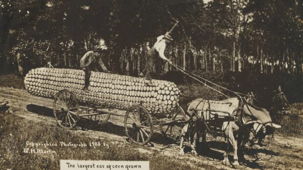 Kao i većina onoga što danas vidimo kod slika nastalih korišćenjem veštačke inteligencije, mnoge od ovih ranih fotografija prikazuju očigledno fantastične scene – poput čoveka koji gura džinovsku verziju sopstvene glave u kolicima ili ogromnog klipa kukuruza koji vuče konjska zaprega.